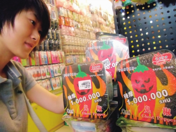 24日是中国民间的中元节,又称鬼节。记者在龙潭路一家时尚零售百货店看到,该店推出的一种名为“鬼椒”的小型盆栽,吸引了年轻人好奇的目光。 本报记者 刘慧娟 摄