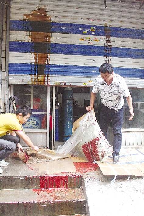 8月24日上午约8点半,谭先生(化名)突然接到门店邻居老吕的电话,他们俩同在小纬六路附近开店。“你能早点过来吗?”电话那头,老吕语速急切,“我店里出了点儿事,想看看你那监控里录下人没有。”原来,老吕的店铺23日深夜遭人泼漆了。