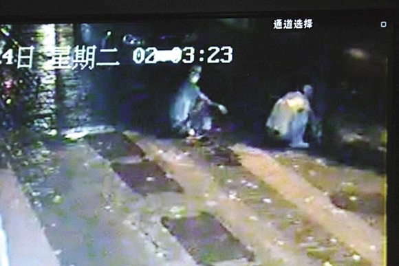 8月24日早上,老吕发现店铺门面遭人泼漆后,就连忙打电话找到了谭先生。果然,监控录像上,“黑手”现身。