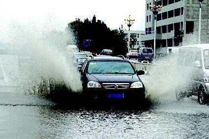 8月24日下午,几阵大雨过后,部分路段马路积水严重。在沂蒙路与涑河南路交会北50米处,汽车从积水路面疾驰而过,溅起一人多高的水花,给过往市民和车辆带来许多不便。