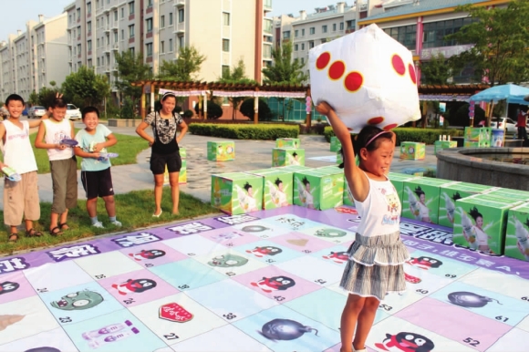 22日,在潍坊市中学街社区,一名小朋友正在参加趣味运动会。为了增进邻里之间的感情,为邻里之间搭建一个沟通平台,中学街社区居委会组织策划了一场趣味运动会,让社区里的居民前来参加,在健身的同时增进了邻里之间的感情。