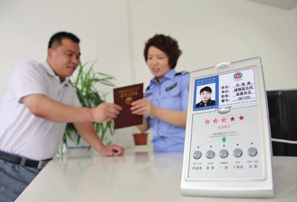 8月24日,为提高群众的满意度,自觉接受群众评判和监督,莘县公安局在全县各户政窗口统一安装了“满意度评价器”,县公安局将根据市民的评价结果列入单位和民警的绩效考核成绩。