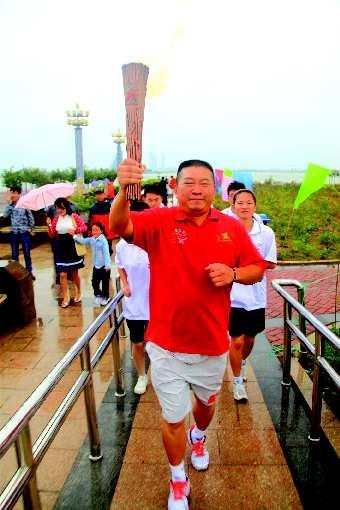 ▲临沂市拳击协会主席尹志林在传递火炬。 马峰摄