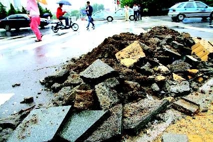 25日下午,市区八一路和红旗路交会处东北角,一堆施工留下的渣土未及时清理,堆放在马路旁,过往行人及车辆纷纷绕行,影响了出行。市民希望有关部门及时清理。