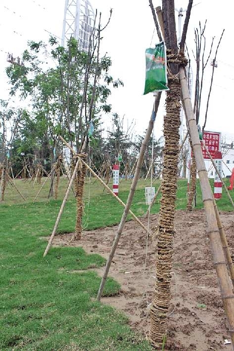 在已经完成的太阳谷园林景观绿化中,不少刚移栽过来的树木都在打着点滴,确保能够在移栽初期健康成长。而在已完成的绿化景观中,具有太阳能光板的景观雕塑和照明设施,更是与各具特色的景观绿化相得益彰。据协达路桥总经理曲先生介绍,太阳谷的绿化已经不再是一般的道路绿化,而是上升到了景观效果的高度,按照“一路一景观”的标准,打造出太阳谷的条条景观大道。