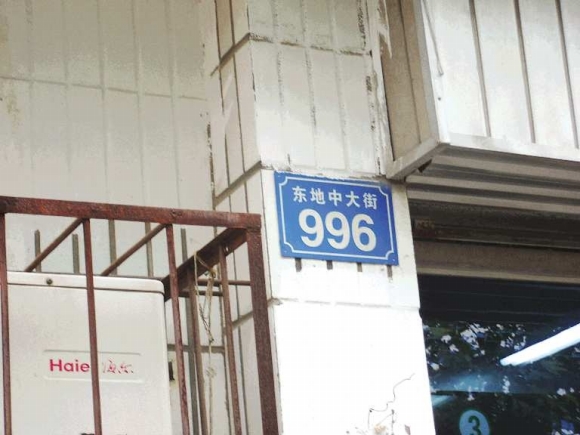 某单位门牌号是东地中大街988号(图①),一墙之隔的单位门牌号成了东地中大街996号(图②),对面的单位门牌号又成了东地北路48号(图③)。