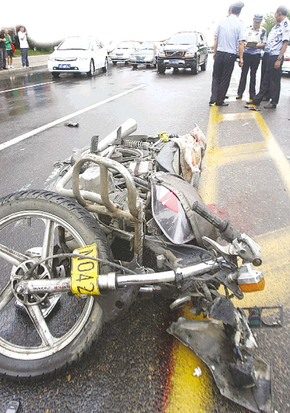 事故发生后,摩托车严重破损。 本报记者杨宁 摄