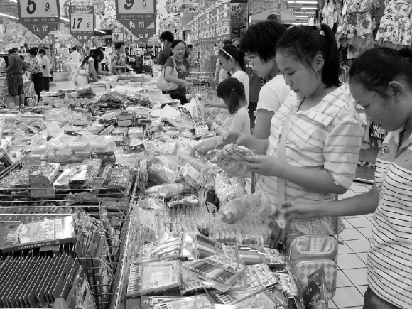 25日,在宁夏路上一家超市,不少学生正在选购学习用品。新学期即将开始,经过一个暑假的休整,学生们纷纷进入了“备战”状态,不少学生家长开始忙碌着给孩子选购学习用具。