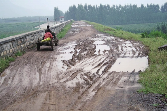 该客运线路业主杨正周介绍,客车是从附近的牛庄通往泰安市区的,一辆车每天跑来回两趟。以前,客车从大董村内道路穿行,村民可以就近乘车。大董村村西的危桥限行后,客车只能从东路绕进村内,然后拉客。可现在遇到恶劣天气时,村东拦水坝上的道路泥泞难行,客车只能在附近的公路上等待。