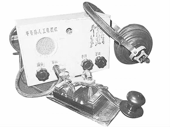 被我们视为生命的电台,实际上很简陋:两间房子,里间桌上摆着无线收发报机,一侧安放手摇发电机,外间警卫值班。室外竖起一根20米左右的木杆直指蓝天,天线朝向济南。收发报机由我和小赵轮班操作,手摇发电机是个笨家伙,折叠支架,电机装着摇把,两端摇机员相向而坐,伸出右臂同时转动摇把,电流达到规定安培时方可发报。而当我们手按电键时,摇把会变得更加沉重,幸亏县里选派了壮劳力,没办法,那个年代老式机器就是落后啊。