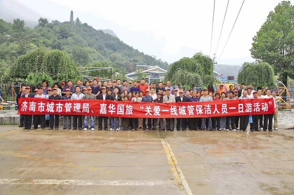 由本报和济南市城管局联合举办的“关爱城管保洁员子女”夏令营活动在全社会掀起关爱保洁员的热潮。25日,济南市城管局与山东嘉华国旅联合组织100位城管保洁员代表到章丘三王峪旅游风景区游览。记者邱祎通讯员赵非邵帅摄