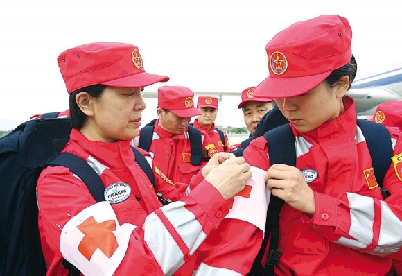 这支救援队包括36名医疗分队队员,其中有14名女医护队员。