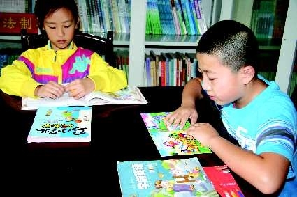 孩子们正在阅览室里读书。
