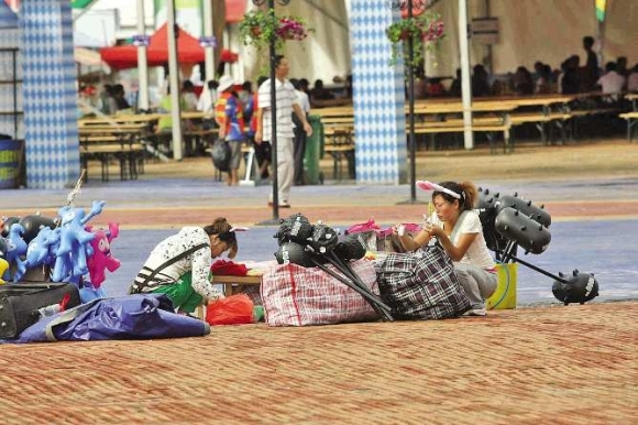 “还有几天啤酒节就要结束了,如果不赶紧把货卖出去,砸在手里不光赔本,再运回去还要花钱。”小贩老刘有些无奈,他说赶紧低价把手里的货卖出去就行了。