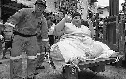 这位体形肥硕的女子名叫乌努埃蓬,今年40岁,住在首都曼谷的郊区。乌努埃蓬的邻居们得知她需要到医院接受右腿肿瘤切除手术后,与曼谷市政当局取得了联系。曼谷市政府随即派来了工程师、破拆队、救援人员以及医生和护士协助乌努埃蓬出行。