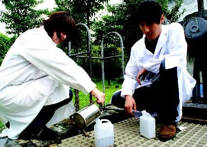 8月26日上午,在临沂首创水务有限公司(临沂市污水处理厂)的污水进水口,工作人员正在将进厂的污水装进透明的塑料桶内准备监测。据介绍,目前该厂每天可处理污水15万吨,经处理水质已达到了国家1级A标准,每天处理后的1万吨中水,将用于电厂生产用水、市政用水和陷泥河景观用水。