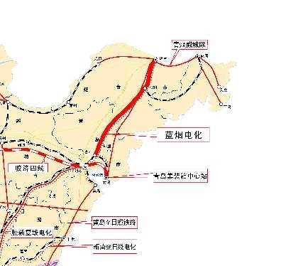 蓝烟铁路始建于1953年,途经青岛、烟台和威海三市,全线设有14站,是我省一条重要的南北向干线铁路。2008年12月26日,蓝烟铁路电气化工程正式动工。工程包括青岛西站至烟台站186.65公里线路电气化改造,烟大轮渡公司珠玑站前方至烟台北站12.11公里线路同步电气化,概算投资157574万元。