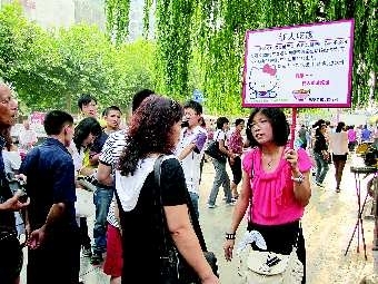 29日下午4点,记者来到芙蓉街南口,只见红色上衣的锄草正举着她的“征人吃饭”牌在努力“征人”。牌子上面写着“乙肝不会通过共餐等日常生活接触传播,我是乙肝病毒携带者,但有家人却不与我共餐。现征人一起吃饭,我请客,您吃饭”等内容。“这是干什么的?”许多人好奇地围观。