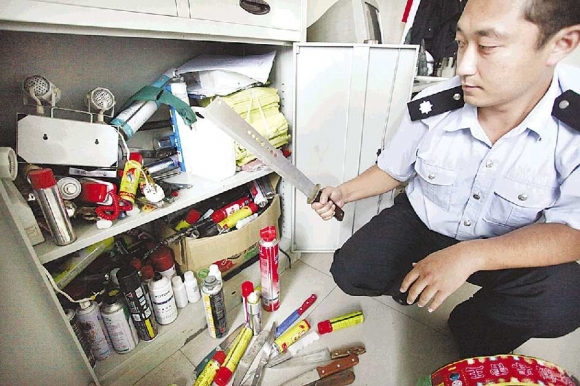 暑运以来,聊城汽车总站安稽科严。截至28日,共查获大小刀具28把、杀虫剂8瓶、丁烷气体(打火机气)25瓶、仿真手枪1把、鞭炮2盘、自喷漆6瓶,切实保护了旅客安全。本报记者李军通讯员 曾伟摄影报道