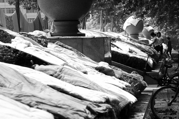 开学前几天成了大学宿舍的“晒被日”。29日,聊城大学校园被花花绿绿的被褥占满。花丛上、操场上、自行车上、地上,目光所到之处几乎都有被子。据了解,有同学为晒被子早起床,六点左右,校园里能晒被子的地方几乎都满了。