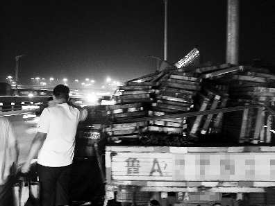 30日19时30分左右,交警部门对事故现场进行勘察后离开,路政部门工作人员也来对高架桥面进行了查看。“天黑,暂时不能确定路桥损失。”一位路政工作人员表示。