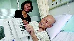 #在医院,王延周仔细看本报关于彭嘉衡去世的报道。