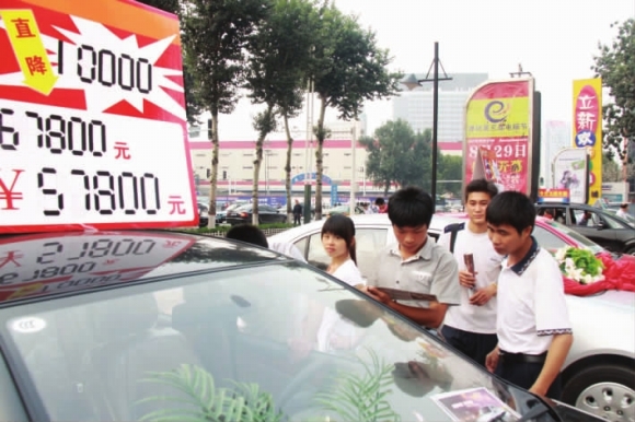 29日,在青年路附近的一场小型车展会上,不少品牌车打出了降价牌。“金九银十”在望,不少经销商认准时机,争相让利促销。