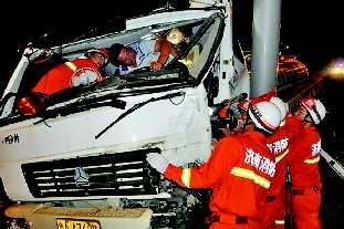 8月29日晚8时许,二环南路上,一辆绿化车不慎撞到绿化带中的路灯杆上,车内一名男子腿部被卡。济南消防十六中队的官兵闻讯赶至现场,先将变形的驾驶门撬开,随后又利用液压扩张器将这名男子成功救出,前后不到10分钟。 通讯员孔强摄影报道