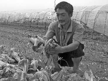 王占广是菏泽人,去年秋天来到烟台种菜,比起同村的村民,他每月还要多付近百元的租赁费,这也带给了他更多的愁苦。跟他说起现在飞涨的菜价,这个四十多岁的庄稼人—脸愁容地告诉记者,菜价是比以前涨了—些,但是对于菜农来说,根本没有挣到钱。大雨—下,原本能收儿百斤的菜只能捡出儿十斤,而每斤菜顶多涨两三毛钱,涨价根本补不回地里烂菜的损失。“就这—段时间,我这四亩地要赔3000多块钱。”王占广嘴里不断重复着。