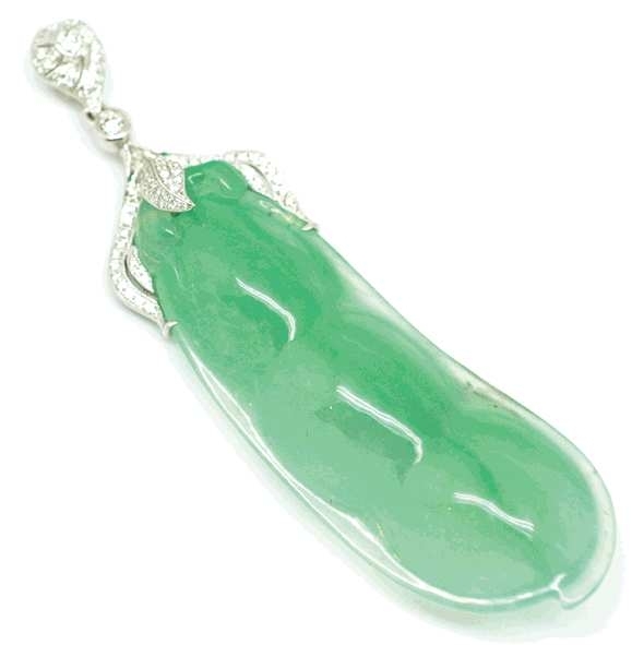 本款主体为福豆,造型修长可爱,栩栩如生,润泽通透的材质充满了灵气,雕琢独特,意境美好,寓意四季来财,门庭兴旺,本款实为翡翠雕件中之上品。