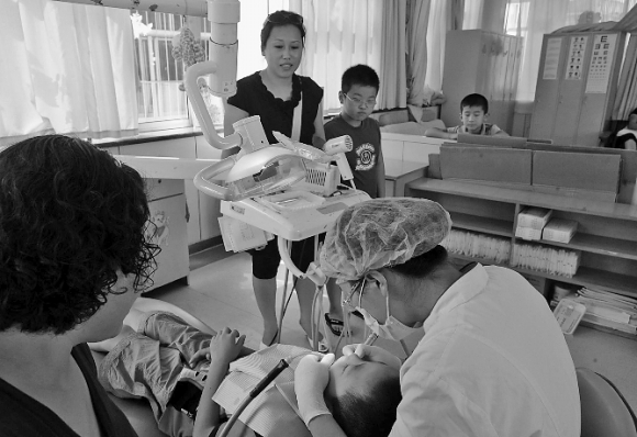 30日,威海口腔医院小患者进行龋齿治疗。开学在即,各医院口腔门诊又迎来小学生就诊高峰,许多家长担心开学后看牙耽误孩子学习,赶在开学前集中就诊。据口腔医院的医生介绍,近几天的门诊量比此前高出近一倍。本报记者张中冯砚农摄
