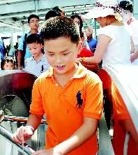 “这是中国馆,孩子们,这个馆像什么?”五胞胎的妈妈轩荣华问孩子们。老四李云轩抢着回答,“像一个大鼎,老师在课堂上讲过。”进入中国联合馆,孩子逛遍每一个展厅,里面有北京的奥运福娃、云南的民族歌舞、天津的小洋楼等。五胞胎的爸爸妈妈边走,边给孩子讲解。在山东馆的孔子像前,五胞胎的脚步停了下来,老大李玖轩兴奋地喊到,“这是咱们老家的孔子像,和曲阜的一模一样。”