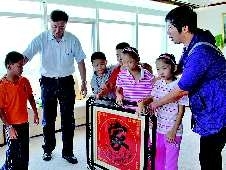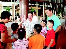26J,应上海飞洲集团邀请,济宁五胞胎赴上海逛世博。27J中午,上海飞洲集团董事长郑华生、总裁李大可与孩子们共进午餐。