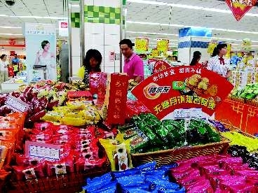 “我们品牌有十多种口味,除传统的五仁、莲蓉、蛋黄外,还有蓝◇等水果口味。”月饼专区内,近十个穿着喜庆旗袍的销售人员不遗余力地招揽顾客先尝后买。今年的月饼大街比去年更长,除了本土的康泉、华盛月饼企业外,像稻香村、稻香园、A里、冠香园等外地食品企业也纷纷抢占本市月饼市场。