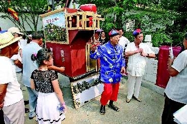 不过,两人的拉洋片至今只表演过两次。这种传统的民间艺术目前缺少表演的舞台,“我们总不能到大街上去表演吧,影响市容。”于仕德说,今年正月初九毓璜顶庙会上是首次露脸,这是第二回。