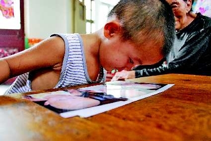 这时,琦琦突然醒来,不停地哭闹。毕启玲拿给她一个已经吃了一半的苹果,琦琦把苹果拿到离眼睛不足3厘米的地方,才摸索着吃了一口。