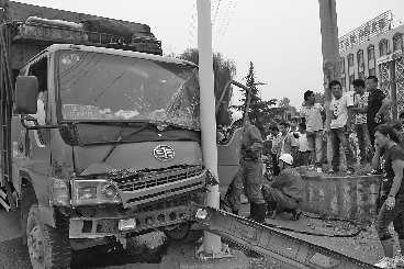 8月30日17时11分,兖州消防大队接到报警称,大禹像西100米处发生—起交通事故,—辆货车撞到路边的电灯杆上,驾驶员被困车内。15分钟后,驾驶员被及时赶来的兖州消防队员救出。