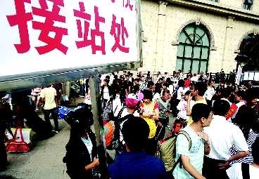 8月31日,在火车站广场,不少学校已经设接站点迎接新生。据介绍,随着岛城大专院校陆续开学,火车站将迎来学生集中返校。