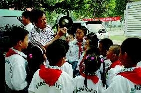 ▲9月1日,济南市舜耕小学开学典礼结束后,教师带领学生学习有关气象的科技知识。