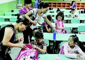 说明:孩子,要注意喝水……孩子,书带全了吗……千叮万嘱总也不放心。 本报记者郭建政摄