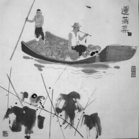 大明湖里有三宝:茭白、蒲菜、白莲藕。奶汤蒲菜是鲁菜中一道名菜,蒲菜烫面饺是济南的名吃。蒲菜是菜中的珍品,蒲草可以编织成蒲包、蒲团、蒲扇、蒲拖鞋等,蒲草的根茎就是蒲菜,像是大葱,剥起来一层一层的,做菜包饺子,都散发出一种特殊的清香味,大明湖里收获蒲菜时,在水上收割后捆绑起来运到岸上,当天即在市场上出售。大明湖的船户子除了靠撑船接送赏湖的旅客,就靠在湖里种这茭白、蒲菜、白莲藕为生。