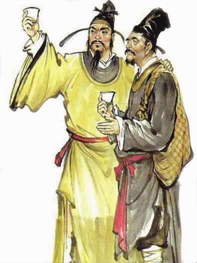 会见的欢宴就安排在新建的历下亭上。李邕、杜甫、李之芳在座,可能还有许多齐州的知名人士出来作陪。特别应该提到的是李白这时也在齐州。天宝三年,他与杜甫在洛阳相遇,结伴东游。他信奉道教,正在紫极宫受道录,不知是道规使然,还是没有接到请帖,或许还有其他原因,这位极善饮的诗人没有来喝这杯酒,否则历下亭上一定会留下李白的诗作了。李邕与杜甫把酒长谈,论诗论史,也谈及了杜甫的祖父杜审言,这让杜甫十分感激。就在这次欢宴中,杜甫留下了“海右此亭古,历下名士多”的佳句。