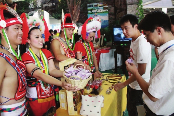 随台湾花莲县政府代表团来的施女士热情好客,“我姓施,西施的施,来尝尝我们带来的小吃吧,多吃多吃……”她一边把盛有满满小吃的竹筐端到记者面前一边热情地介绍自己。