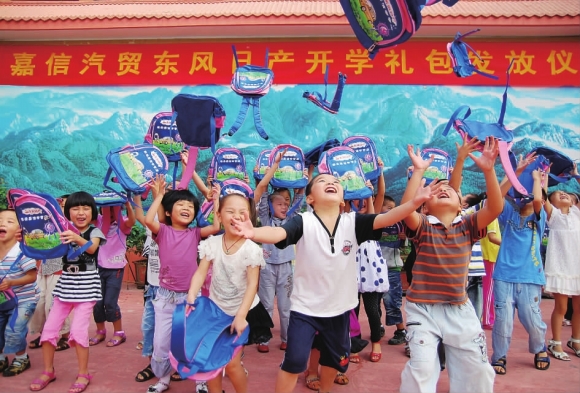 1日,迎胜小学的一年级新生领到新书包后高兴地抛了起来。当天,泰安市各中小学开学,学校开展各种活动,让师生快速融入新学期的生活。同时,公安、武警和学校自身也都采取了各种措施,保障师生的安全。
