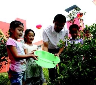 9月1日,北城新区岔河小学一年级新生与老师一起栽下开学树,种下一份希望。