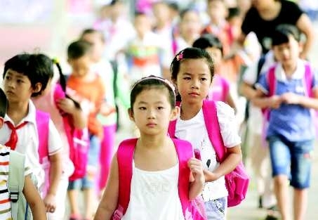 9月1日7时30分许,在临沂第二实验小学,结束了暑假生活的小学生们走入校