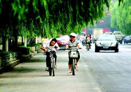 8月30日下午,市区开阳路东段,市民在繁茂的行道树下经过。行道树繁茂的枝叶给市民出行带来不便,希望有关部门能修剪这些树木。