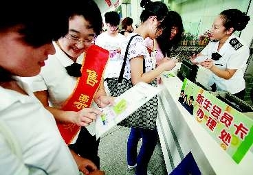 9月2日,即将赶赴高校报到的大—新生们在济南长途汽车总站办理“新生会员卡”。当日,正值各大高校新生集中报到时间,该总站特别为新生推出会员乘车服务,只要凭录取通知书即可成为会员,大学就读期间出行都享受8.5折的购票优惠。