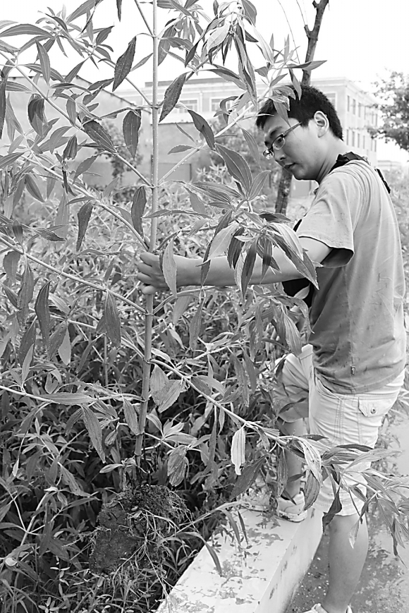 8月29日,在山东大学生命科学院教学楼下,蔡云飞指着花坛边的一片长满杂草的空地说,去年曾有一个生命科学院的研究生,在去云南做野外研究后,带回一把在当地泛滥成灾的外来入侵物种紫茎泽兰的种子,“他当时‘不怀好意’地把种子撒在那里,说想看看能不能在北方长起来。”