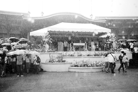 菲律宾民众冒雨悼念香港遇难游客。(资料片)